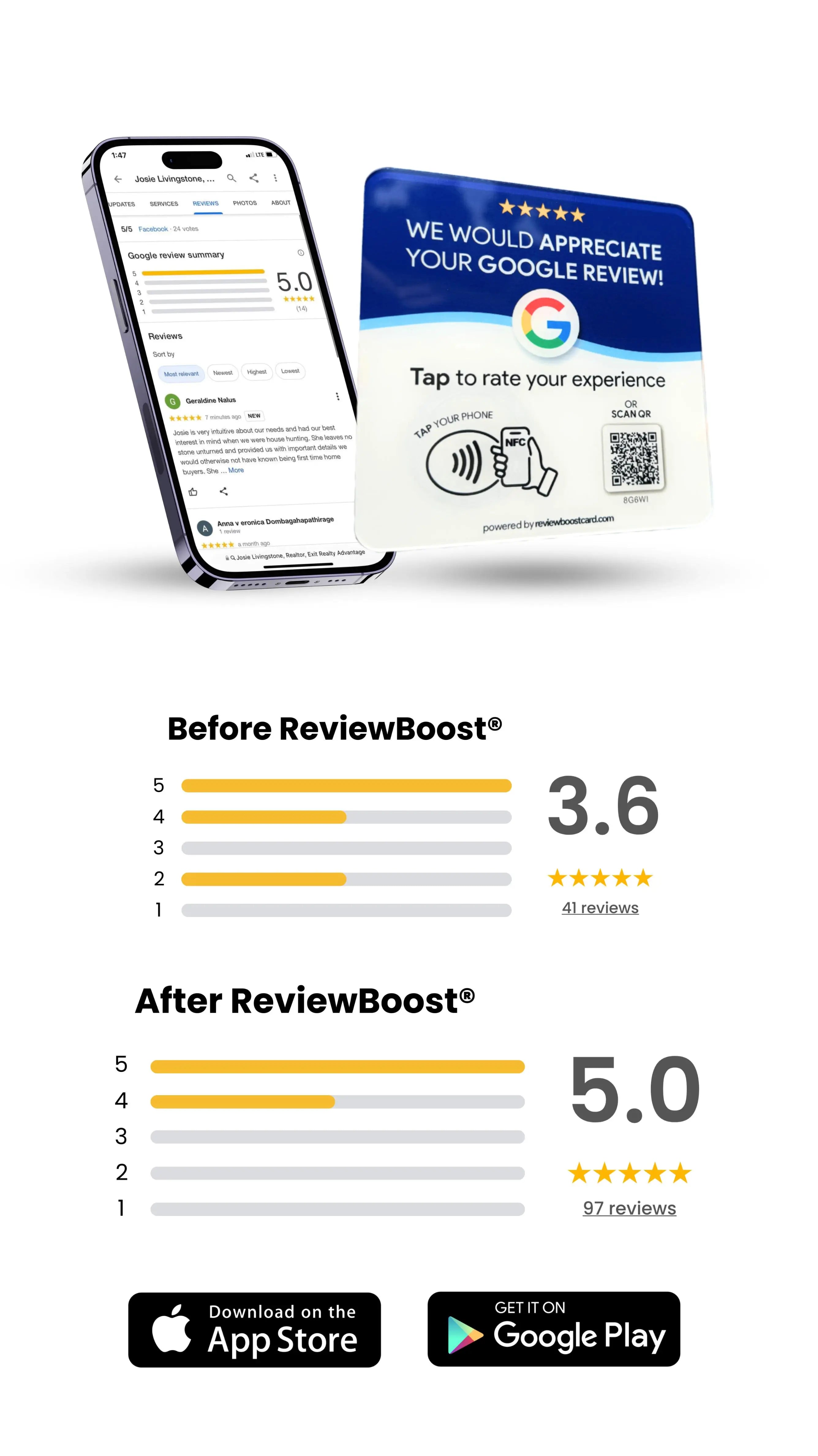With a ReviewBoost Plaque, there's no ceiling to the number of reviews you can accumulate.
